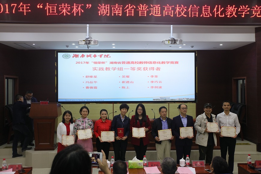 10月28-29日,2017年“恒荣杯”湖南省普通高校教师信息化教学竞赛决赛在湖南城市学院举行,经过激烈的现场比拼,英国上市官网365参赛选手李菲老师获实践教学组一等奖。