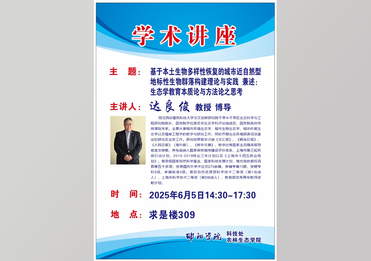 达良俊:基于本土生物多样性恢复的城市近自然型 地标性生物群落构建理论与实践 兼述:生态学教育本质论与方法论之思考