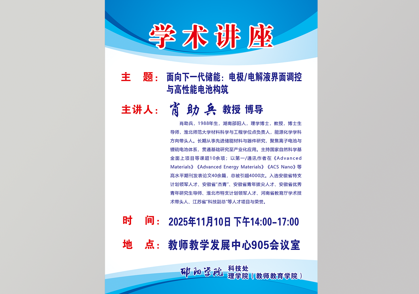 肖助兵:面向下一代储能:电极/电解液界面调控与高性能电池构筑