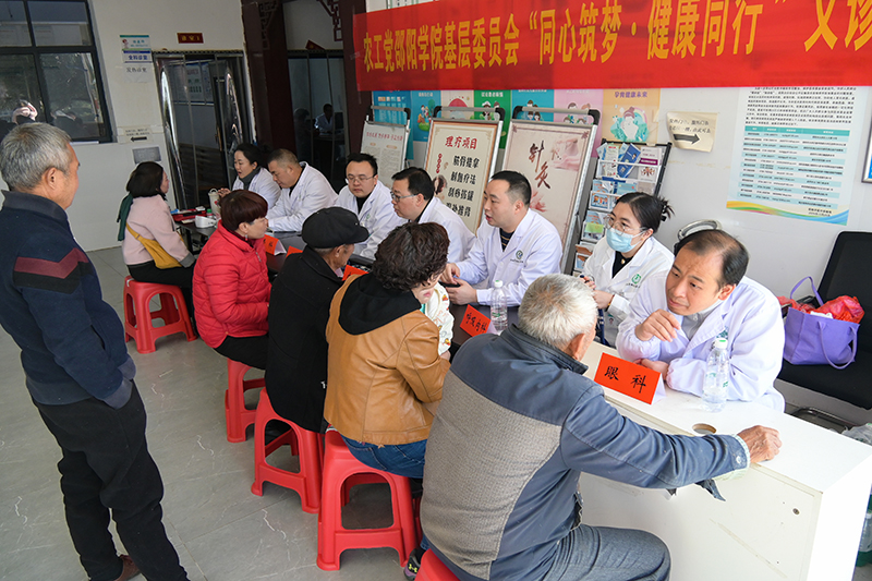 清晨 7 时 30 分,党员们从七里坪校区出发,首站抵达蔡锷乡卫生院开展义诊服务。眼科刘刚、内科杨迎宾、神经外科杨冬武、急诊科李文峰等 12名医疗专家组成的服务队,面对赶集日慕名而来的大批群众,有条不紊地提供问诊咨询、病情诊断、健康指导等服务。现场累计接诊群众逾 100 人次,免费发放健康手册,用专业服务践行农工党 “服务社会” 的宗旨。