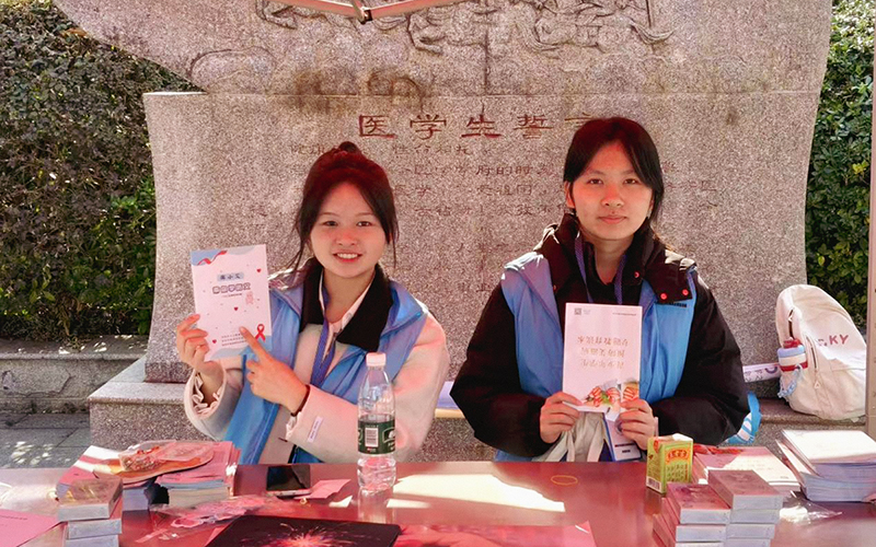 校医院携手医学科普协会、红十字会联合开展大学生艾滋病防控宣传活动