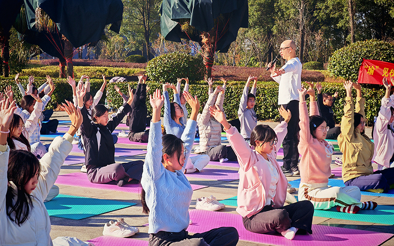 作为活动的主要环节,瑜伽练习部分针对学生群体常见的肩颈紧张、压力等问题,设计了包括冥想放松、猫牛式、婴儿式在内的一系列舒缓体式。参与者在教练的引导下调整呼吸、舒展身体,将传统养生与现代瑜伽相结合进行锻炼。