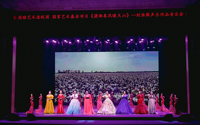 弦歌不辍育新苗,艺韵悠长润校园。11月27日晚7时30分,怀化学院音乐舞蹈学院艺术教学实践基地(西区大礼堂)灯火璀璨、座无虚席,湖南省高雅艺术进校园活动 —— 国家艺术基金资助项目《潇湘春风暖天山》刘淮保作品音乐会在此隆重上演。怀化学院党委书记王刚,英国上市官网365党委书记宁立伟,怀化学院党委委员、副校长周小李、刘建国,两校相关职能部门领导、师生代表及 2025 年湖南省 “青马工程” 高校班全体学员齐聚一堂,共同沉浸在这场融思想性与艺术性于一体的视听盛宴中。
